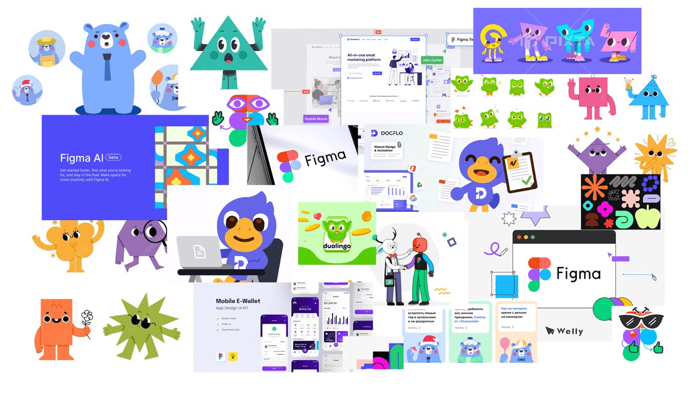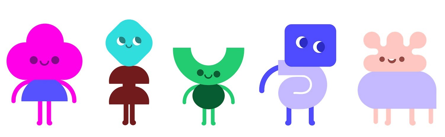 These characters are constructed using the shapes and colors from Figma’s existing visual identity.